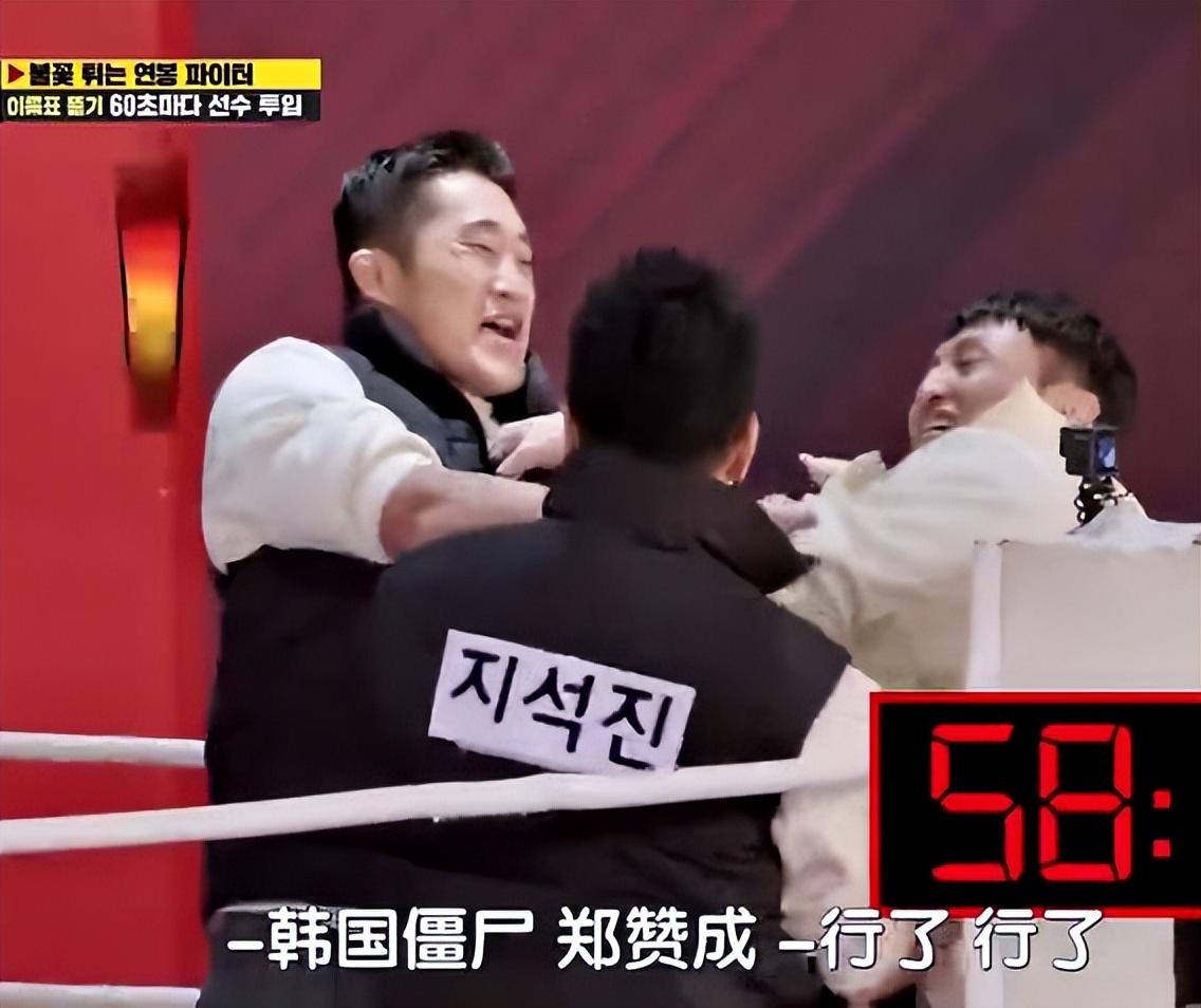 金东炫仗着人高臂长,和崔斗虎形成了僵持局面。等到一分钟过去,池石镇和郑赞成的登场让局面迅速改变。