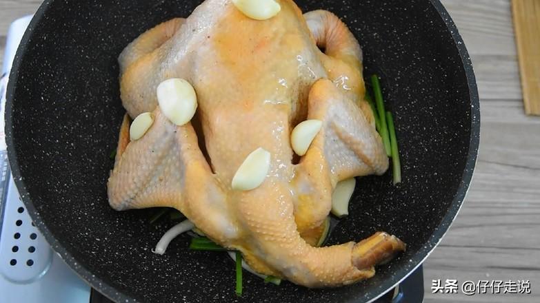 1.选一只童子鸡洗净,撒盐两料勺,胡椒粉2勺,花雕酒3勺