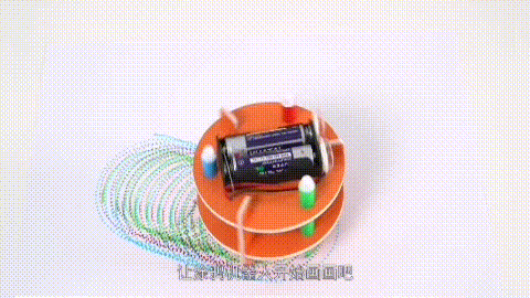机器人通过旋转画出一个个圆,这么多圆构成了一幅美丽的画。涂鸦机器人的原理涉及到偏心轮。