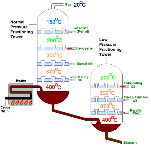 由于原油是许多不同的碳氢化合物物质的混合物,它们可以相互混溶,因此在原油变成煤油之前,必须将其分离成各种组分