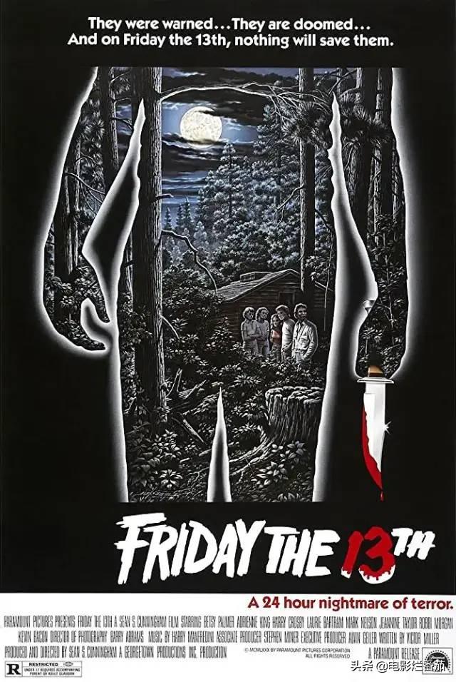 1980年的《十三号星期五》在恐怖片的外表之下,其核心却是一部悬疑片。一群学生来到水晶湖营地度假,在宁静的郊外营地中,却隐藏着巨大的凶险。