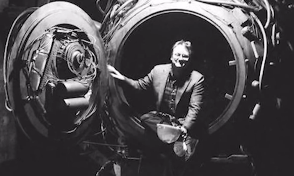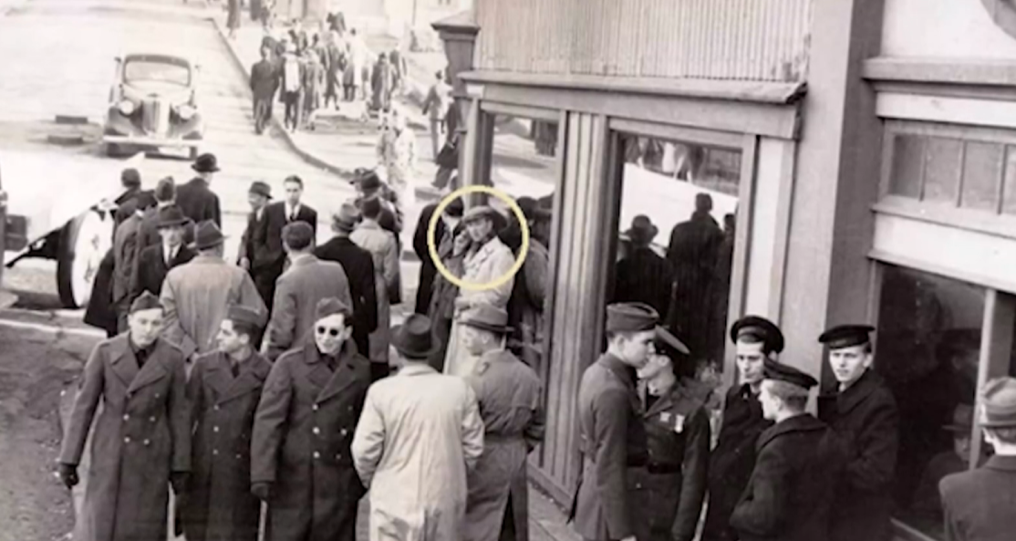 为此它还供了一张照片,作为他是时间旅行者的证据,就是这张照片,不知道大家有没有印象?这是20世纪40年代初加拿大南叉桥的重新开放,拍摄的照片,他表示那个带着墨镜的是他的同事,而旁边穿着现代服装的神秘男子就是他。