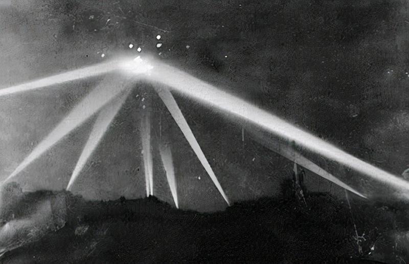1942年2月25日,一个神秘的物体在洛杉矶上空投射着明亮耀眼的光柱。
