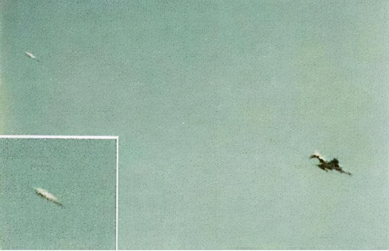 1954年9月,一名飞行员在加利福尼亚州爱德华兹空军基地附近拍摄了UFO跟踪B-47的场景。