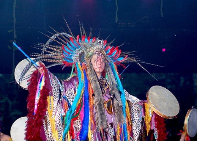 (常常出现在宫中的萨满教仪式者:萨满太太。萨满教的服饰没有固定风格,但以华丽的颜色和夸张的配饰知名。)