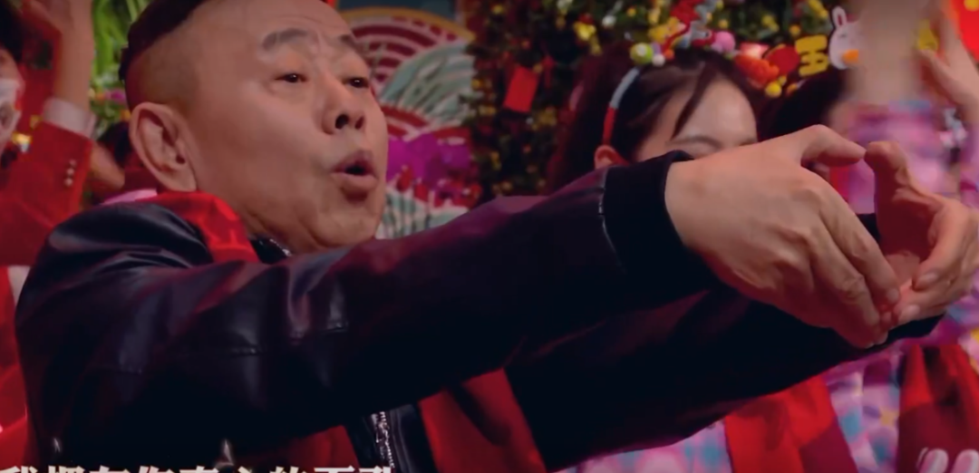 台下的观众们也被歌曲感染开始跟唱,潘长江还在台下比心,节目气氛很好。
